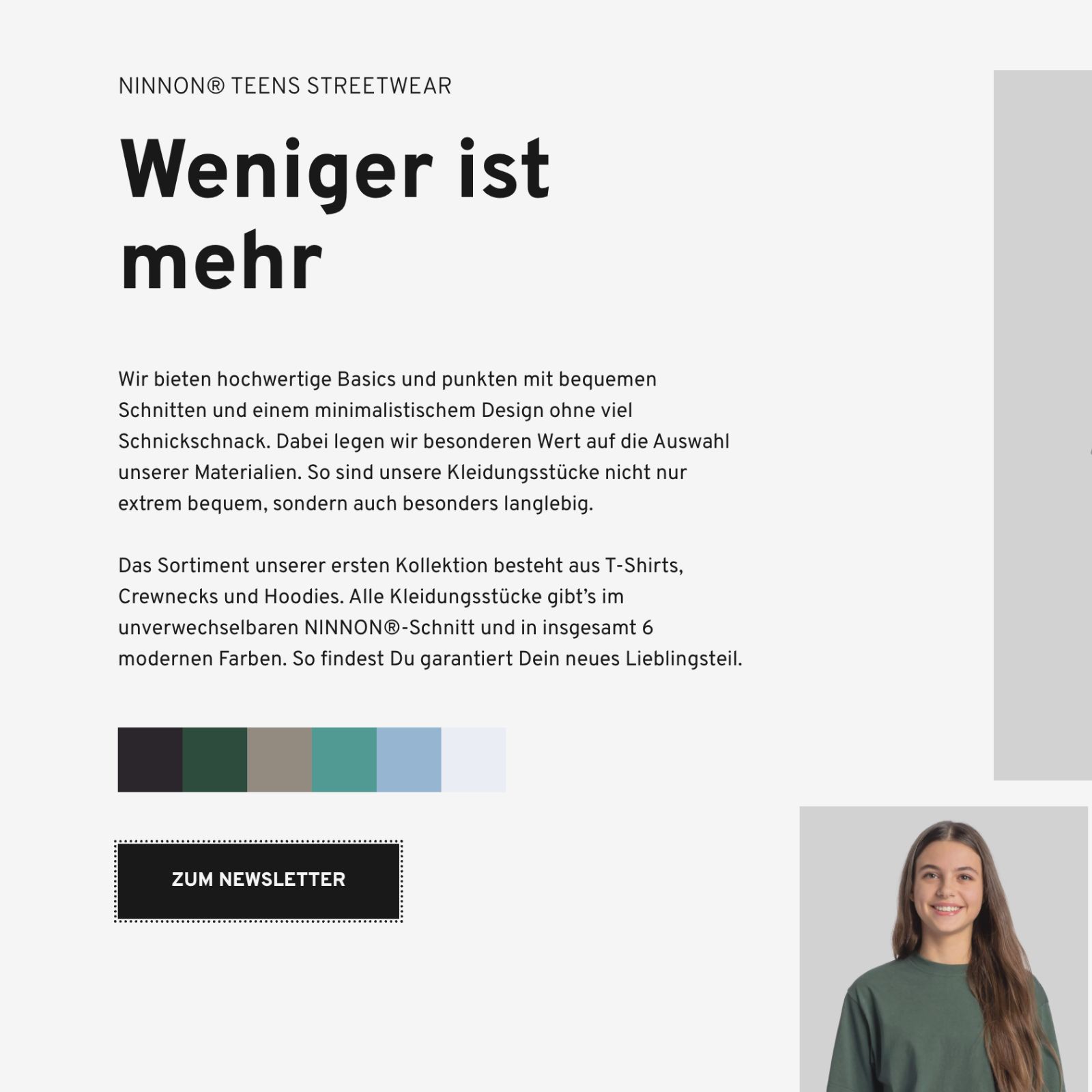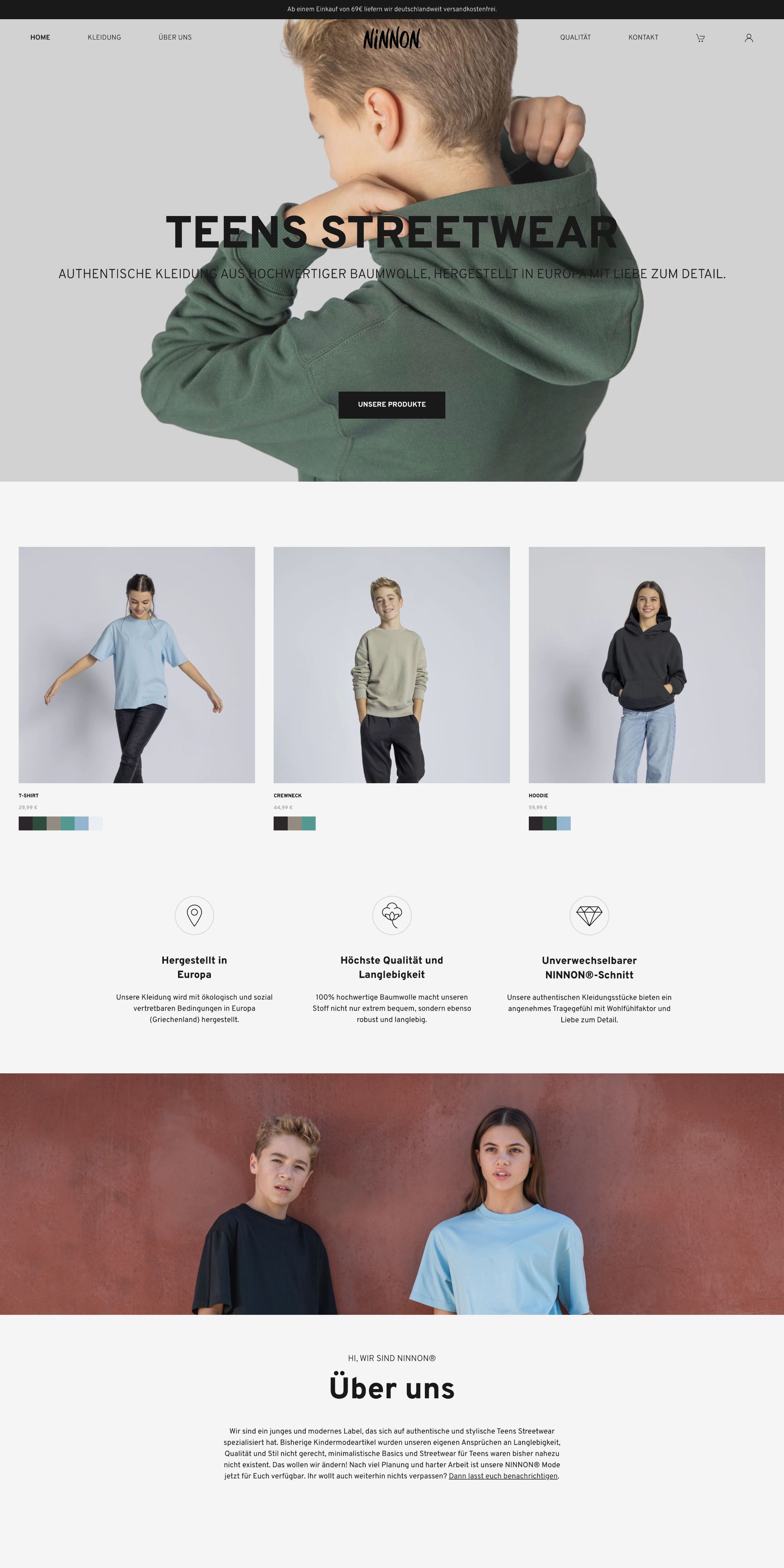 Ninnon ist ein junges Streetwear-Label für Kinder und Jugendliche, das sich auf nachhaltige Mode mit besonderem Schnitt spezialisiert. Mit umfassender Erfahrung aus der Kindermodebranche und einem klaren Anspruch an Qualität, Stil und Haltung entstand eine Marke, die durch Understatement überzeugt.