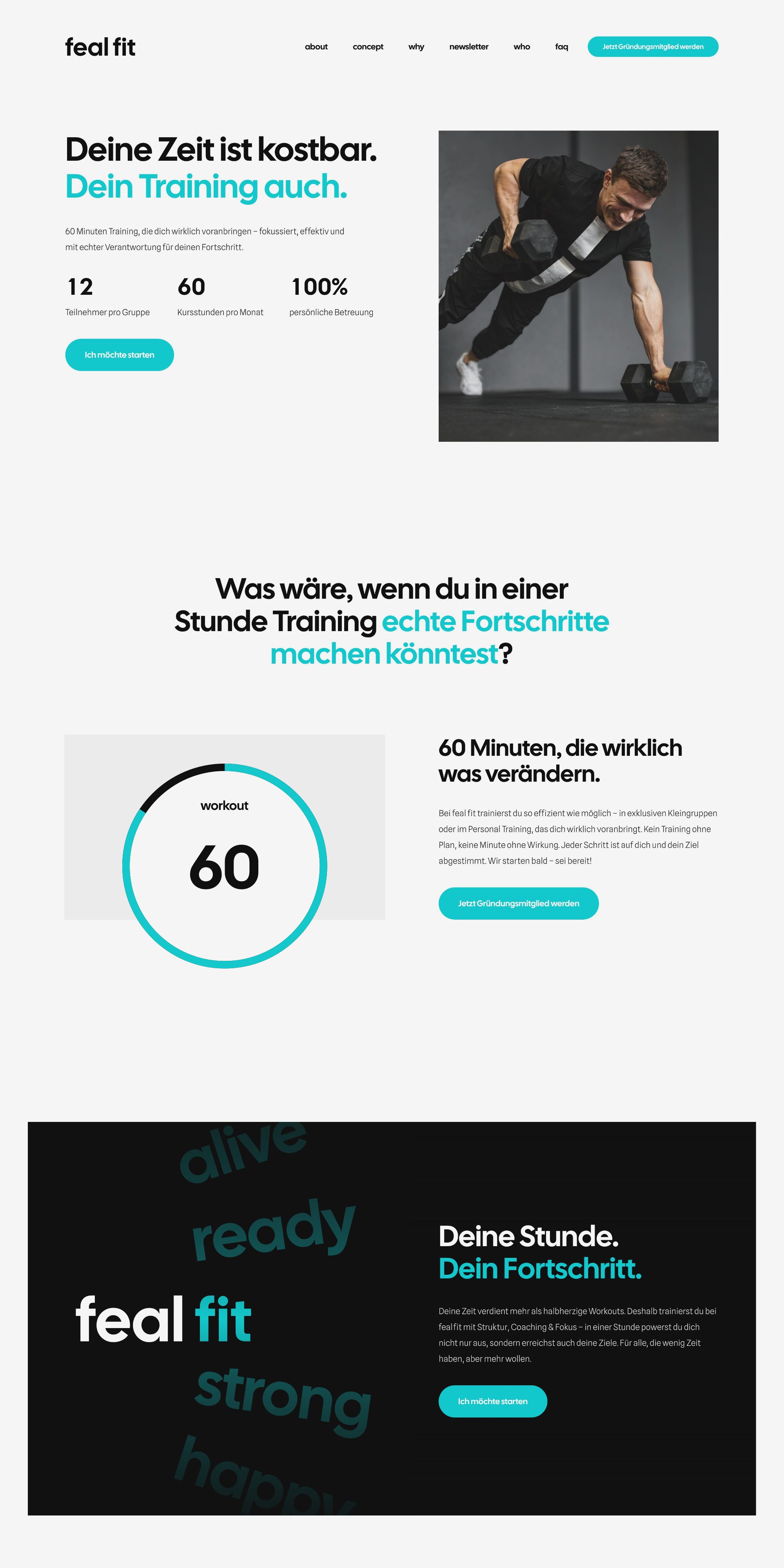 Ein starkes Beispiel für eine gelungene digitale Markenidentität ist die Seite fealfit.de. Das Personal Training Studio verkörpert Struktur, Effizienz und Persönlichkeit – und genau das wird auch im Web spürbar.